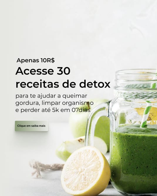 Sem contar que o detox também estimula no funcionamento do nosso sistema imunológico, melhorando ate nosso processo digestivo! E quando estimulamos nosso intestino, ele funciona melhor evitando até constipação. Há, outros benefícios do detox, fora a desintoxicação e o emagrecimento que é você melhorar seu desempenho de memória e aumenta 1.000 x sua disposição! Resumindo, se você quer limpar seu organismo das impurezas com saúde, ter disposição e mais emagrecer 7KILOS na primeira semana de mudanças de hábitos! O e-book 30 receitas de detox para emagrecer em uma semana pode te ajudar. Aproveita a condição de lançamento e adquira agora o seu guia do emagrecimento com detox dentro de uma semana somente com nutrientes natural.