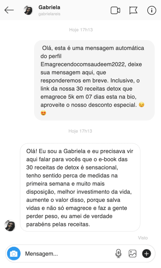 Ele é um e-book contendo 30 receitas com passo a passo desde o preparo aos ingredientes necessários para você fazer 30 receitas de detox. São 30 tipo de suco que vai te ajudar a desintoxicar o organismo, tira impureza, queimar gordura e emagrecer de forma saudável, podendo perder até 5k dentro de 07 dias.
