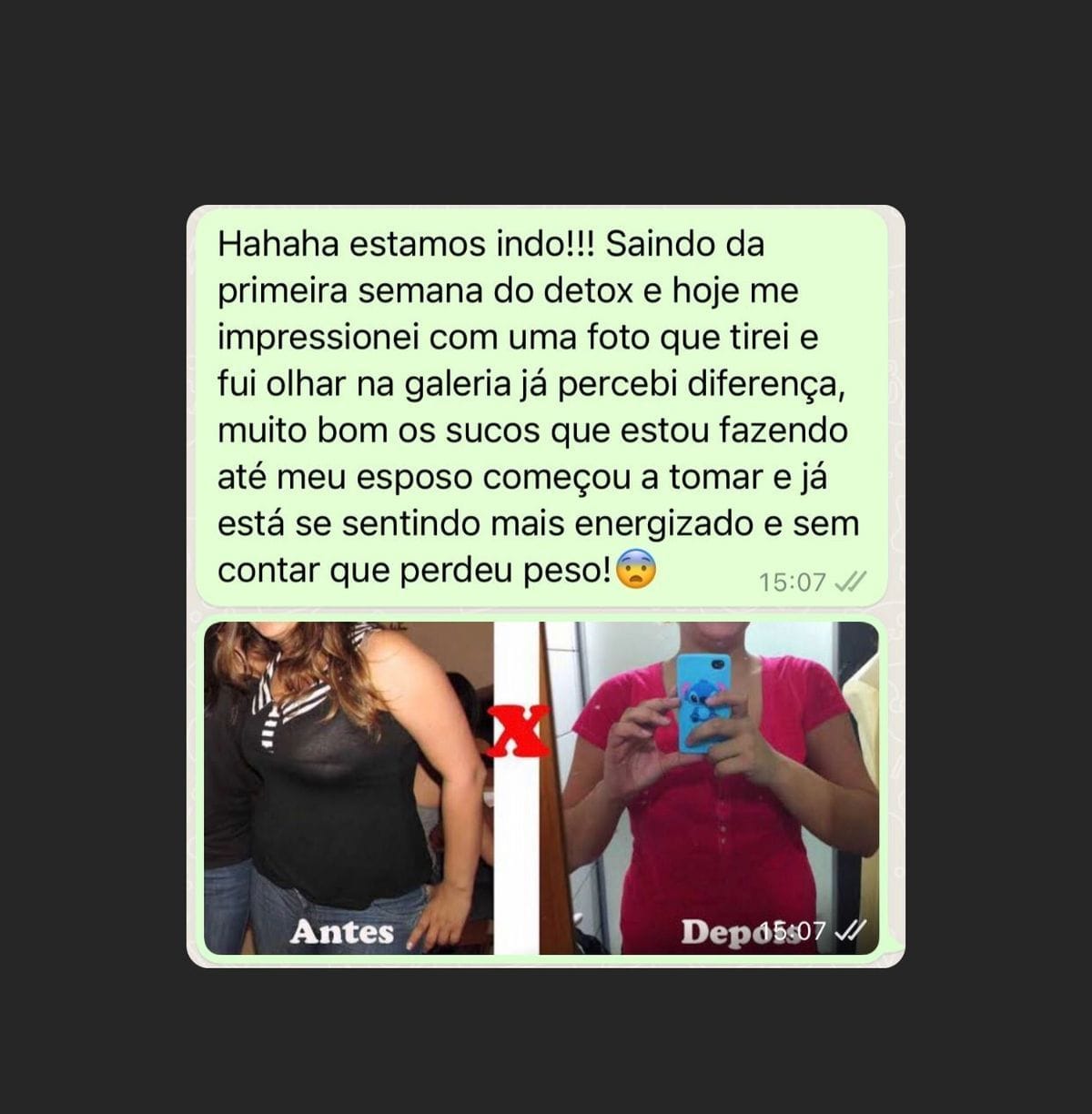Que além de emagrecer com saúde você fará um detox profundo no seu organismo, tirando todas as impurezas. Afinal, por mais que tentamos, sempre enviamos o famoso, pé na Jaca, comemos algo que não faz bem para o nosso organismos e o detoz vai limpar isso.